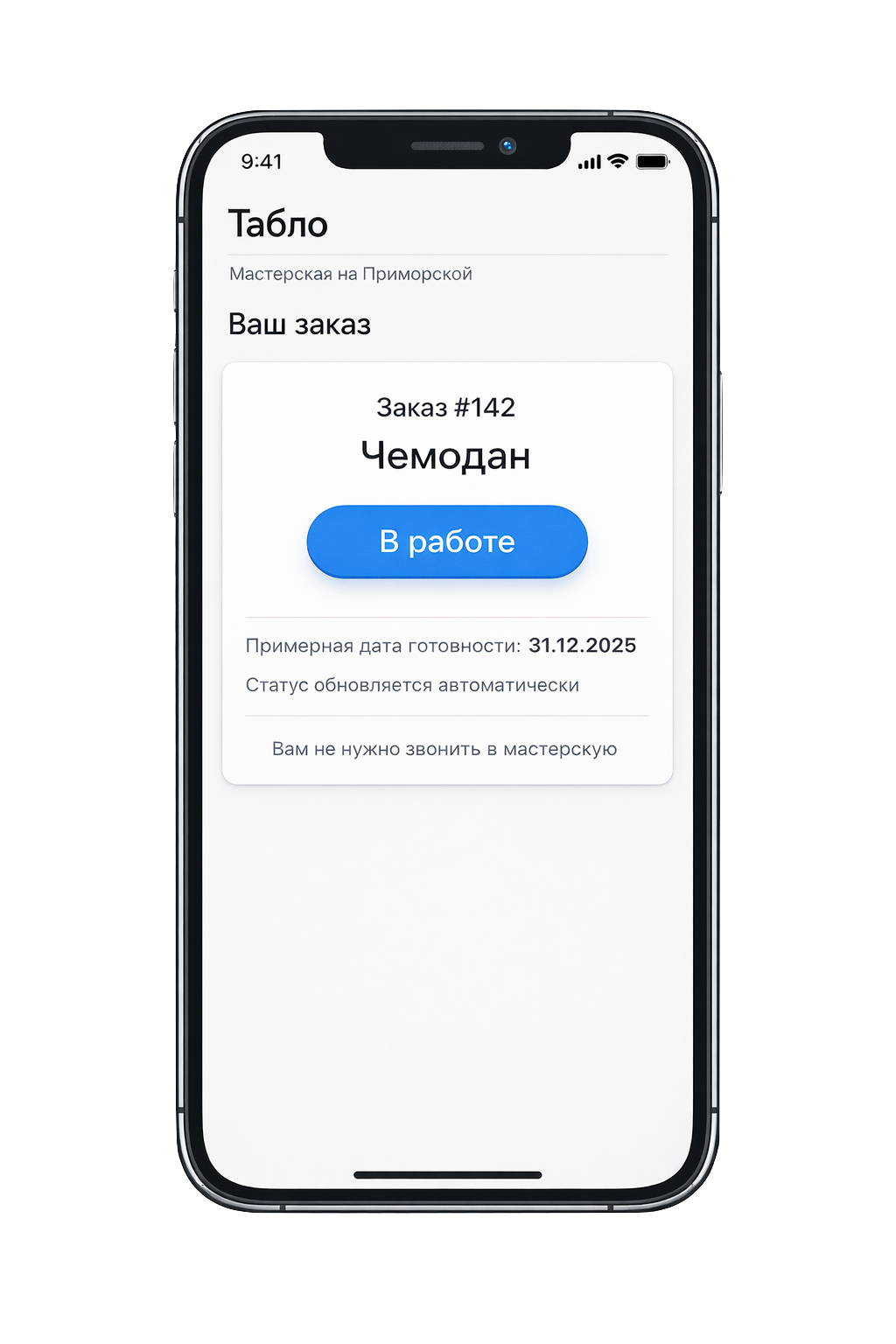 Клиенты видят статус и срок заказа по ссылке или QR-коду — без звонков.